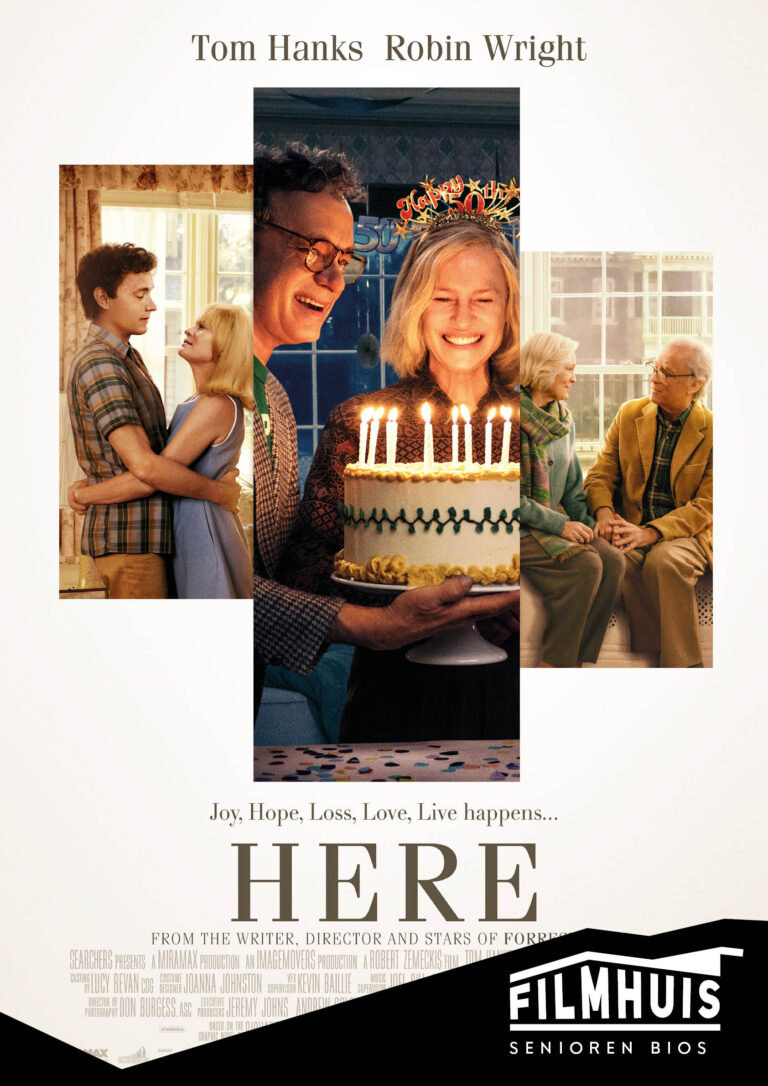 Here is gebaseerd op de gelijknamige graphic novel van Richard McGuire en speelt zich af op één plek in New England, in de Verenigde Staten. De film vertelt de geschiedenis van deze locatie: van de prehistorische wildernis tot het thuis die het vormde voor de verschillende generaties die er door de jaren heen woonden. Dit resulteert in een adembenemende visuele odyssee getekend door herinneringen aan liefde, verlies en hoop. Bekroond regisseur Robert Zemeckis (‘Forrest Gump’,‘Cast Away’) brengt het team achter ‘Forrest Gump’ weer samen voor 'Here', en ook Tom Hanks (‘A Beautiful Day in the Neighborhood’, A Man Called Otto') en Robin Wright (‘House of Cards’, ‘Wonder Woman’-franchise) vervullen hier de hoofdrollen.