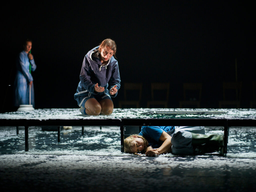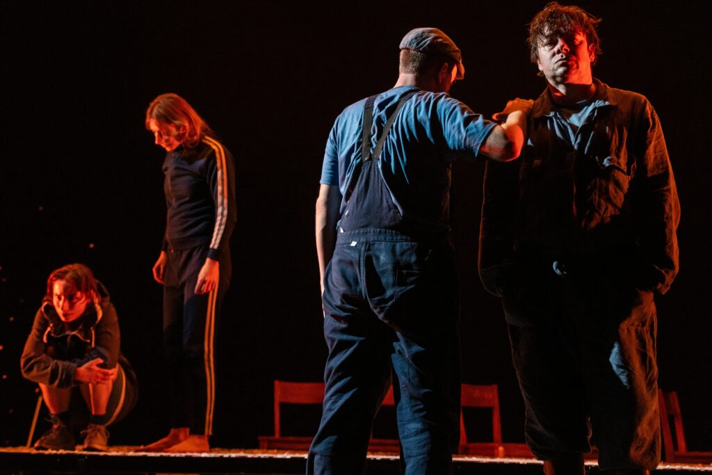 Met ‘De avond is ongemak’ schreef Lucas Rijneveld een beklemmend verhaal. Jibbe Willems en Nina Spijkers maken er een hartverscheurende en ontroerende voorstelling van. Door de ogen van jongste zus Jas, gespeeld door Jip Smit, zien we hoe een streng gereformeerd boerengezin wordt ontwricht door de plotselinge dood van de zoon. De ouders zijn verlamd door verdriet en merken niet dat hun dochter langzaam ontspoort. We zien Jas’ worstelingen en schuldgevoelens en de gesprekken die ze voert met haar overleden broer, gespeeld door Jips eigen tweelingzus Imke Smit.