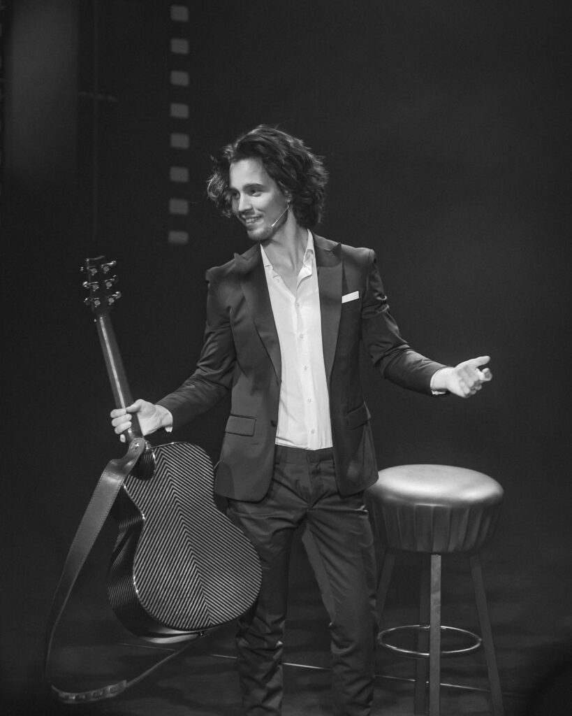 In zijn nieuwe theaterprogramma vertelt Mart Hillen, het jongste gitaarfenomeen van Nederland, over zijn passie voor films en de muziek die ervoor gemaakt is. Hij speelt door hem opnieuw gearrangeerde filmmuziek uit klassiekers als ‘Titanic’ en ‘Mission Impossible’, maar ook uit recente films als ‘Bohemian Rhapsody’ over Queen en ‘Yesterday’ over The Beatles.