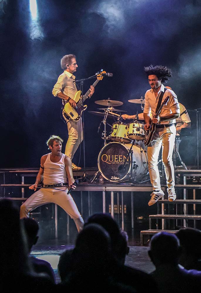 Na een stormachtig jaar, waarin de groep ‘The Tribute, Battle of the Bands’ won, is Queen Must Go On een bekende naam geworden in Nederland. Op festivals en tijdens een eigen uitverkocht show in Ziggo Dome lieten de mannen zien goede en energieke optredens op de mat te kunnen leggen. Dit seizoen keert QMGO terug met een nieuwe show, waarin ze de million seller ‘Queen Greatest hits (Deel 1)’ integraal uitvoeren. De band blijft daarbij trouw aan de albumversies. Met het enorme bereik en timbre van zanger Ward, de vette baslijnen van Geert, het sterke gitaarspel van Ralph en het strakke percussiewerk van Dennis, wordt dit een tribute om naar uit te kijken.