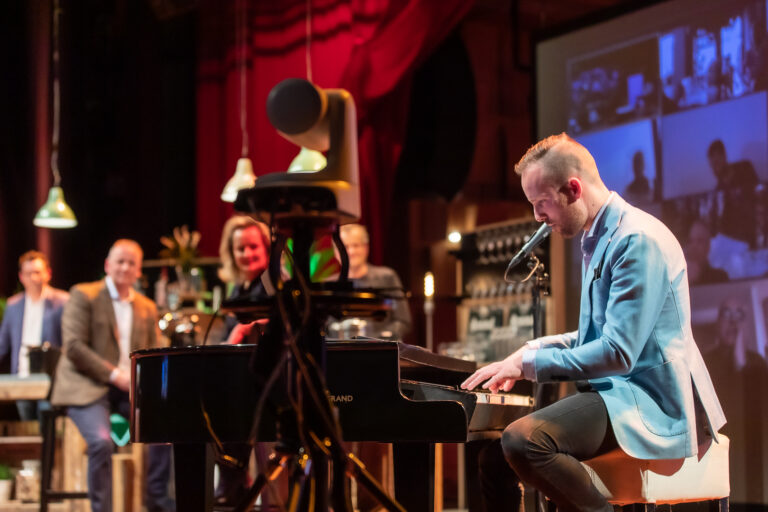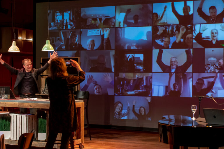 De leden van BusinessClub DNK komen normaal gesproken samen in een van de foyers voor hun businessclubavonden. Daar ontmoeten zij elkaar om te netwerken, gezamenlijk te genieten van een hapje en drankje en om een geweldige voorstelling, inspirerende lezing of spetterend optreden bij te wonen. Maar wat nu dat allemaal niet kan? Dan bouwen we ons podium om tot digitale kroeg en komen we online bijeen voor een wijnproeverij en muzikale quiz.