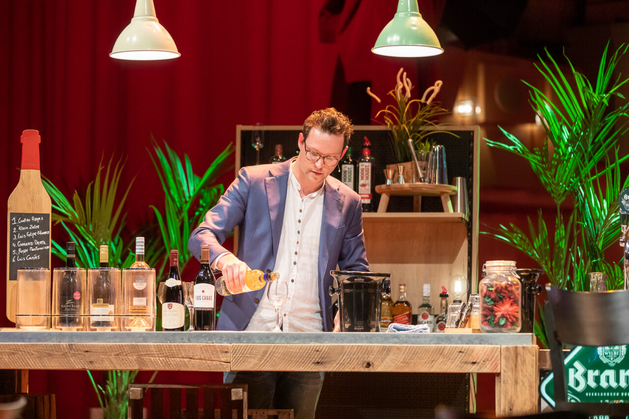 De wijnen zijn bij iedereen afgeleverd, de glazen staan klaar en de sommelier vertelt uitgebreid over de wijnselectie. Vanuit de verschillende huiskamers luisteren kleine gezelschappen aandachtig naar de uitleg over de aroma's, geuren en tonen van de wijnen om vervolgens de wijn te laten walsen in het glas en langzaam naar binnen te slurpen. Op de achtergrond klinken andere tonen: vanachter de vleugel verzorgt Arjen Baakman de muziek en begeleidt hij de muzikale quiz. Verschillende intro's passeren de revue en aan de deelnemers de taak om de juiste artiest of titel zo snel mogelijk te selecteren. Een gezellige en spannende strijd die aan het eind van de rit maar één winnaar kon opleveren. De wijnen werden verzorgd door Sligro Assen