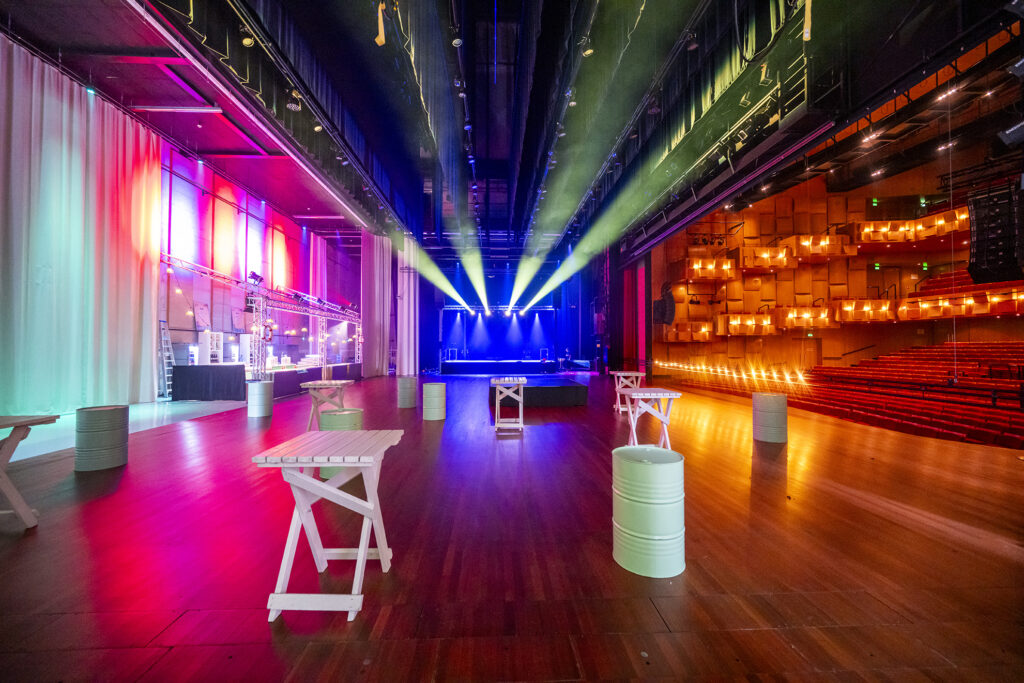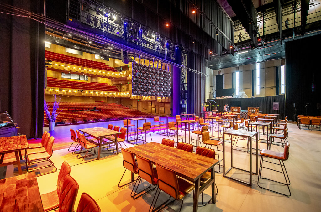 Stap op ons toneel en creëer een geweldig bedrijfsfeest. Geniet van een fantastisch decor en maak gebruik van alle aanwezige voorzieningen in onze foyers. Extra podium op het toneel? Silent Disco? Spetterende lichtshow? Extra bar of Foodtrucks? Laat ons vooral weten wat jouw wensen zijn en we maken er samen een mooi feest van.