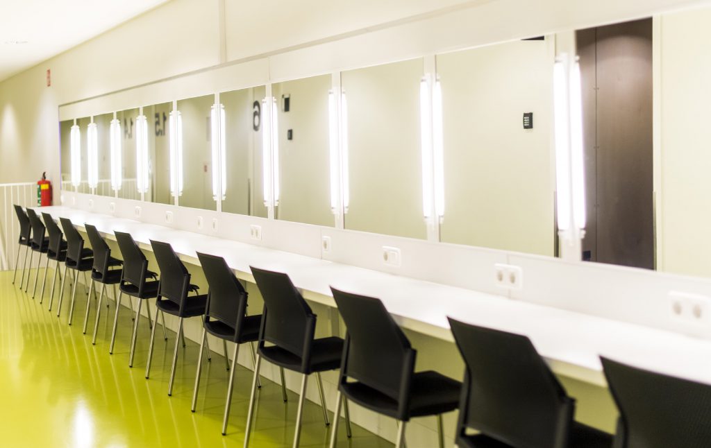 Ieder theater beschikt over kleedkamers om je om te kleden, op te tutten en op te frissen. Maar je kunt ze ook gebruiken als subruimte voor kleine deelsessies. In totaal hebben we negen kleedkamers die je als aanvulling kunt gebruiken voor jouw event.